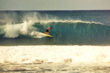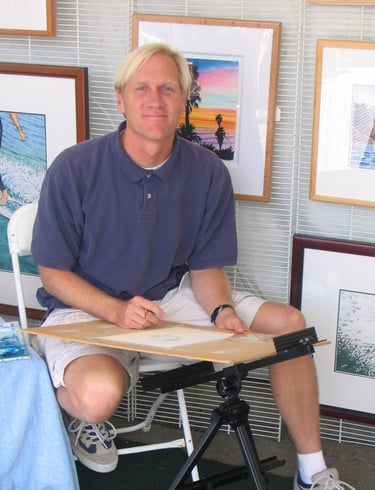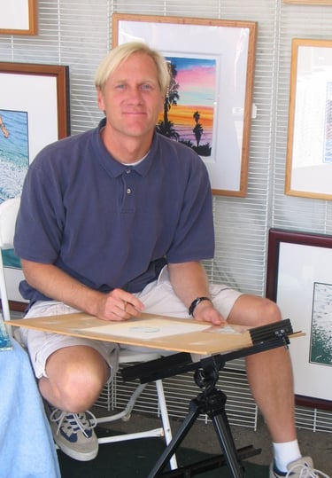 Jesse Miller was born and grew up surfing in in San Diego. He always wanted to go to Hawaii where the water was warm, and the waves were good. When he started thinking about college, he learned about Brigham Young University - Hawaii, and couldn't think of going anywhere else. BYU-H is a small university in Laie, exactly 10 miles from Sunset Beach. He looked the programs they offered, and the Fine Arts program looked good. Before that, he never really thought about art, much less producing it, but once he got to school, he threw himself into everything head first. The surf was everything he had imagined, and the art program was exactly what he hoped for. He started out like any beginning art student, but persisted and practiced and by the time he graduated with a Bachelors of Fine Art degree, he had won several awards in college art shows.
